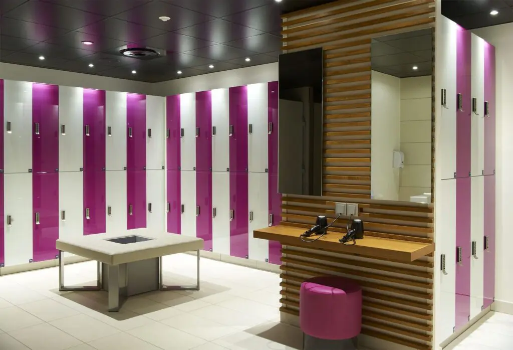Vamos começar com os armários de metal. Eles têm sido a escolha tradicional para vestiários devido à sua durabilidade e resistência. No entanto, há uma desvantagem fundamental com os armários de metal – eles são susceptíveis à corrosão e ferrugem. Isto é particularmente problemático em vestiários que possuem alta umidade ou exposição a produtos químicos, como vestiários de piscinas ou indústrias.