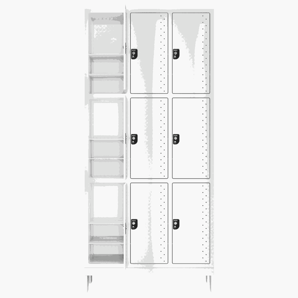 Hospitais e clínicas: a prioridade é controle microbiológico e conformidade com normas de higiene. O PEAD com aditivos antimicrobianos e superfícies laváveis atende bem a protocolos rígidos e reduz pontos de retenção de sujidades. Em áreas de apoio, especificar um roupeiro para vestiário com PEAD e ferragens inox ajuda a manter a conformidade e a durabilidade.